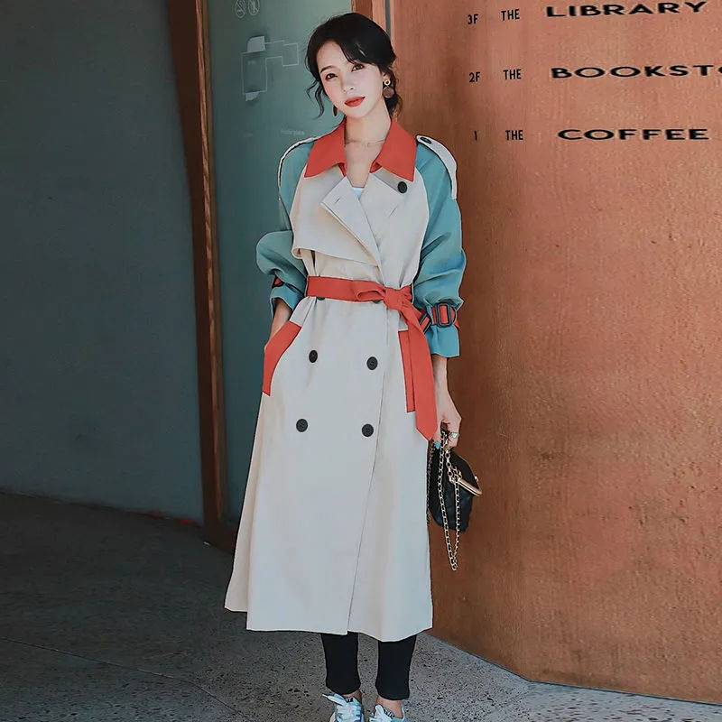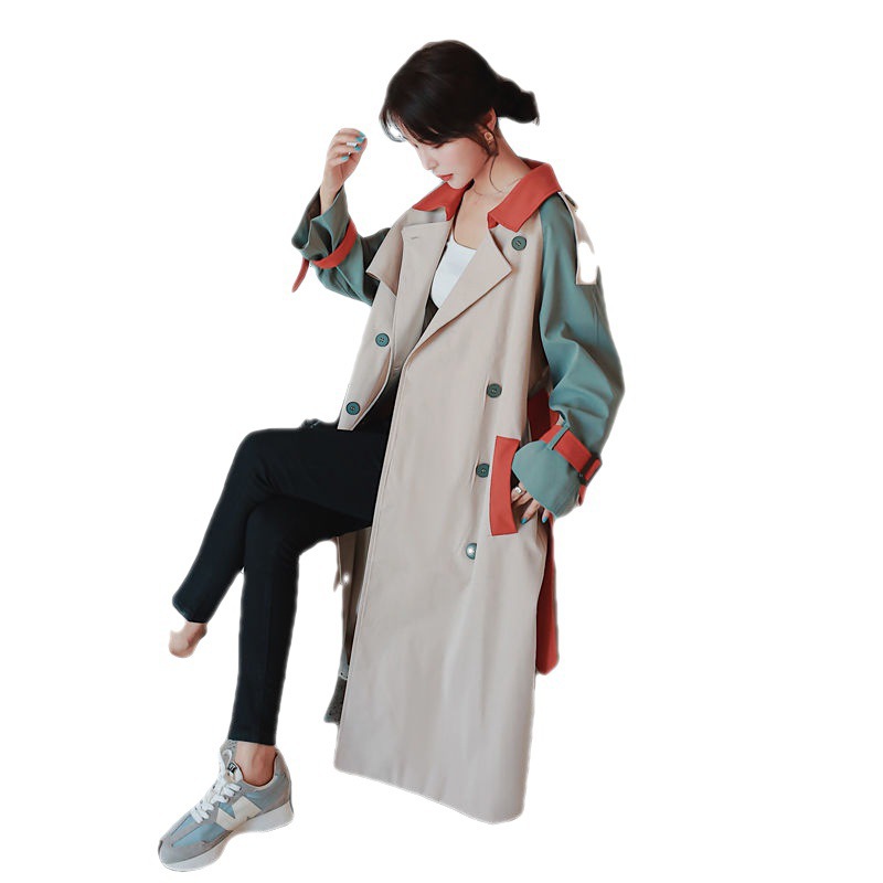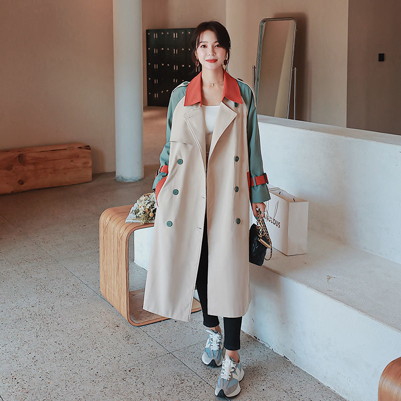 | nameOriginal | Contrast Color Stitching Coat Women's Mid-length 2024 Spring and Autumn Clothes Korean Style Loose Elegant Popular British Style Over-the-knee Coat |