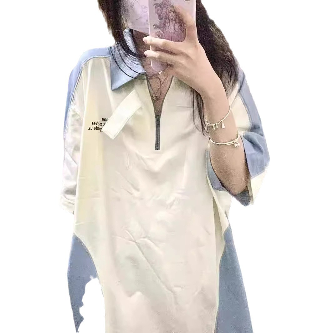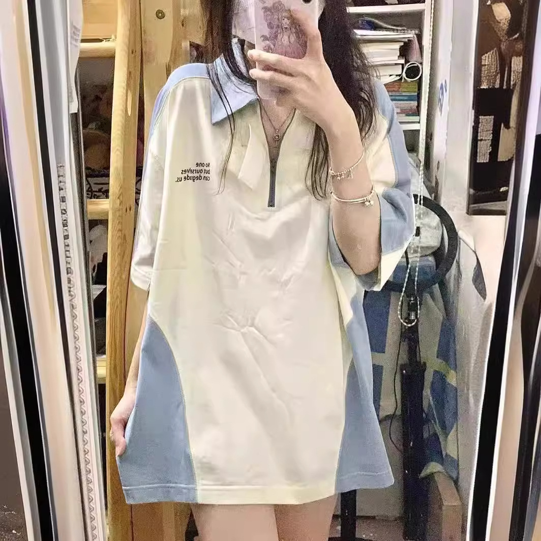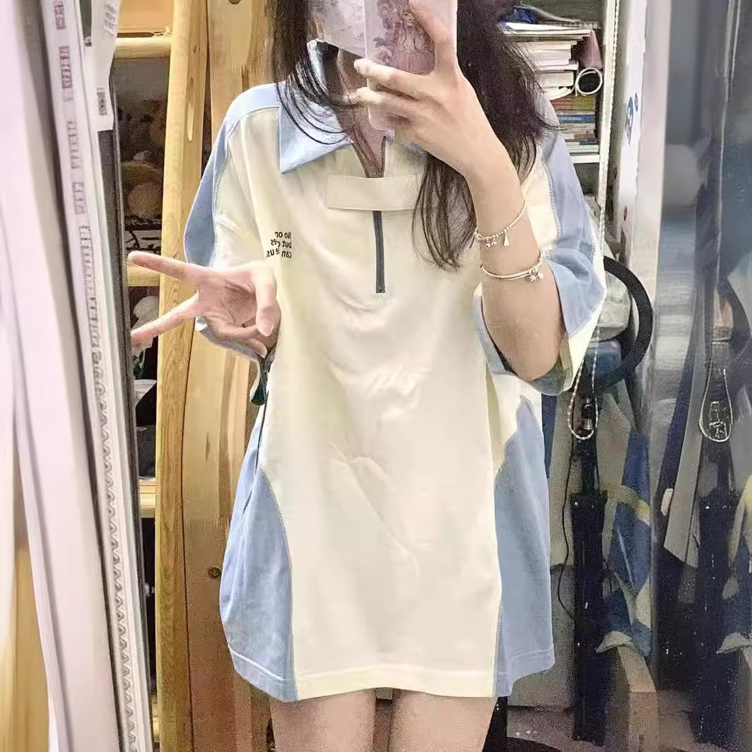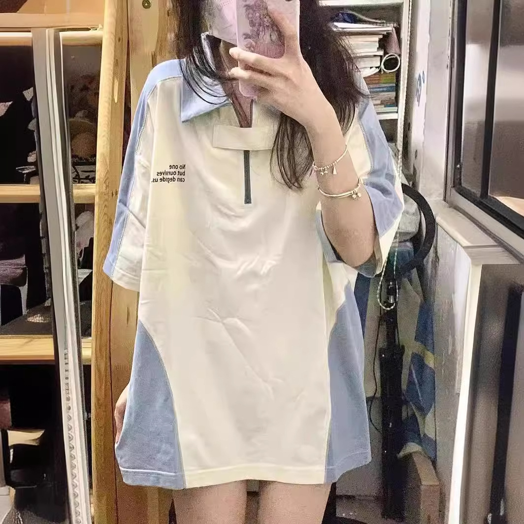 | nameOriginal | Contrast color stitching short-sleeved polo shirt women's summer Harajuku BF wind Net red lapel short-sleeved T-shirt women's ins super hot top |
