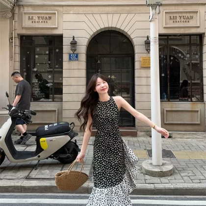 | nameOriginal | Contrast color stitching summer French retro hip-hugging skirt vest |