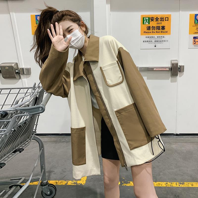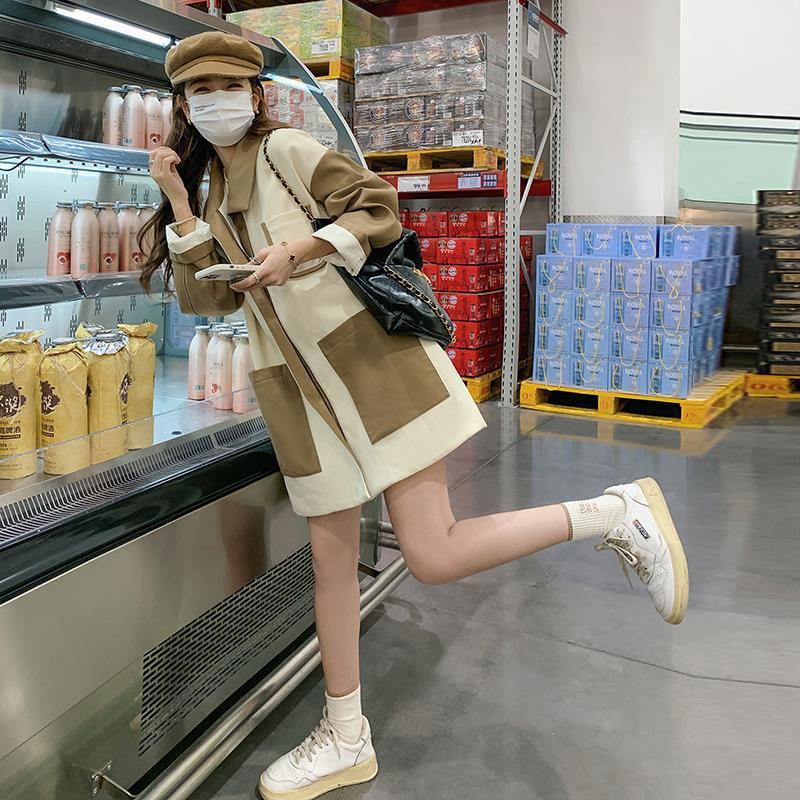 | nameOriginal | Contrast color stitching trench coat Women's Mid-length spring and autumn 2024 New this year's popular casual workwear coat |