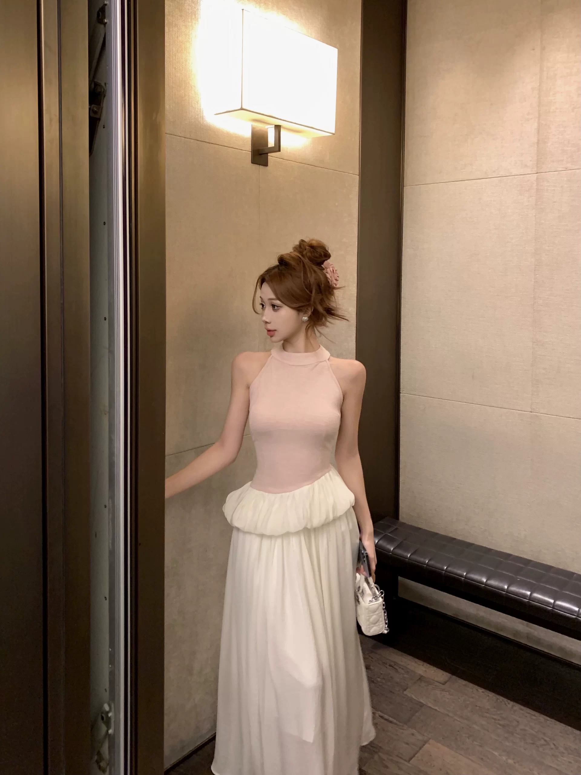 | nameOriginal | Contrast color stitching women's summer half-length two-piece halter neck set |