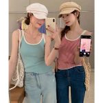 | nameOriginal | Contrast Color Stripe Slim-fit All-match Outer Wear Knitted Vest Women's Summer Inner Wear Korean-style Short Base Red Sling |