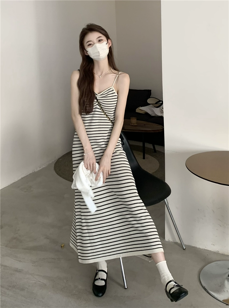 | nameOriginal | Contrast color striped knitted summer slimming suspender dress |