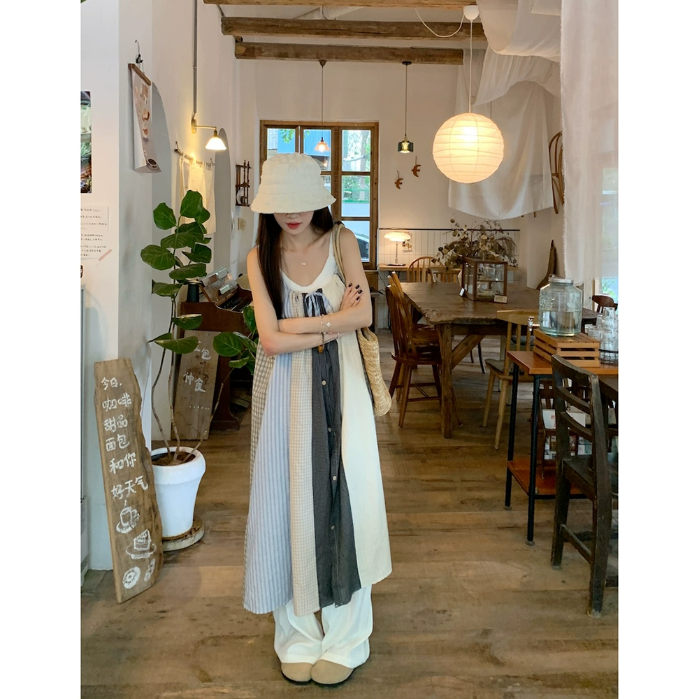 | nameOriginal | Contrast color striped new summer loose suspender dress |