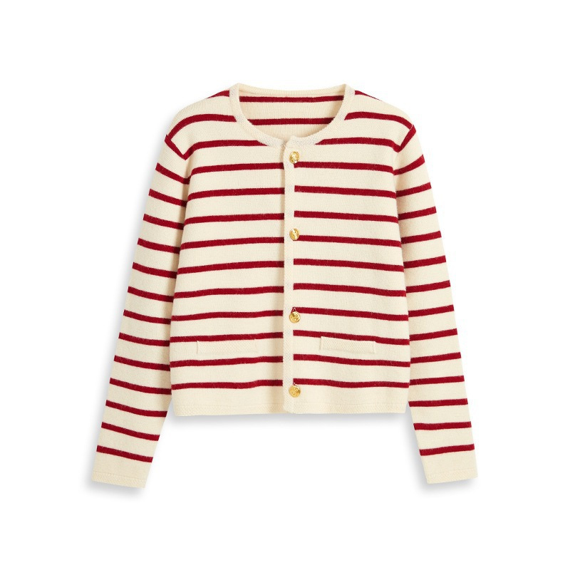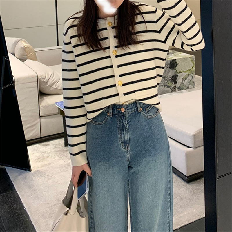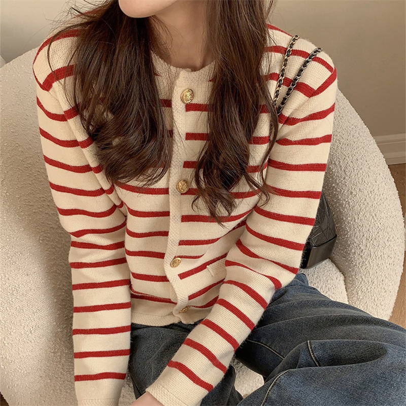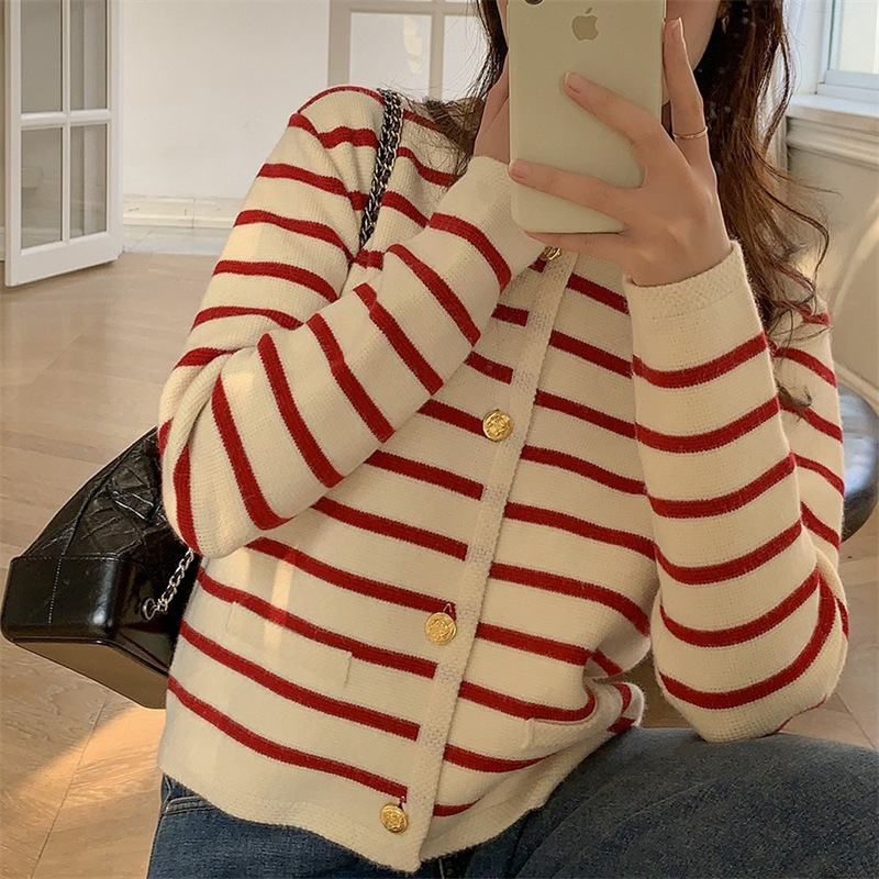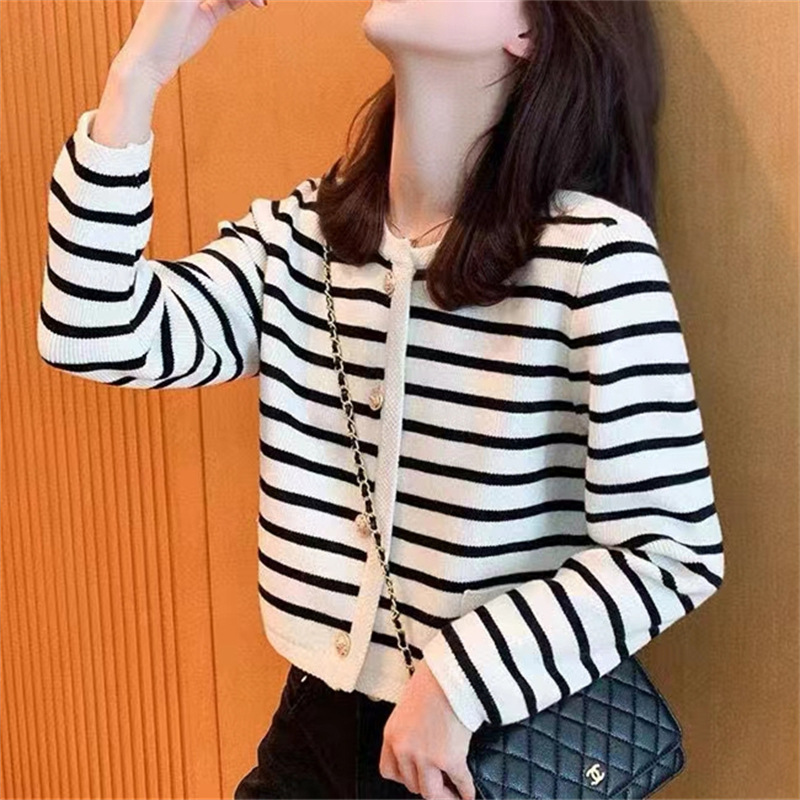 | nameOriginal | Contrast Color Striped Round Neck Chanel Style Knitted Cardigan Women's 2022 Autumn and Winter French Loose Short Outer Sweater Jacket |
