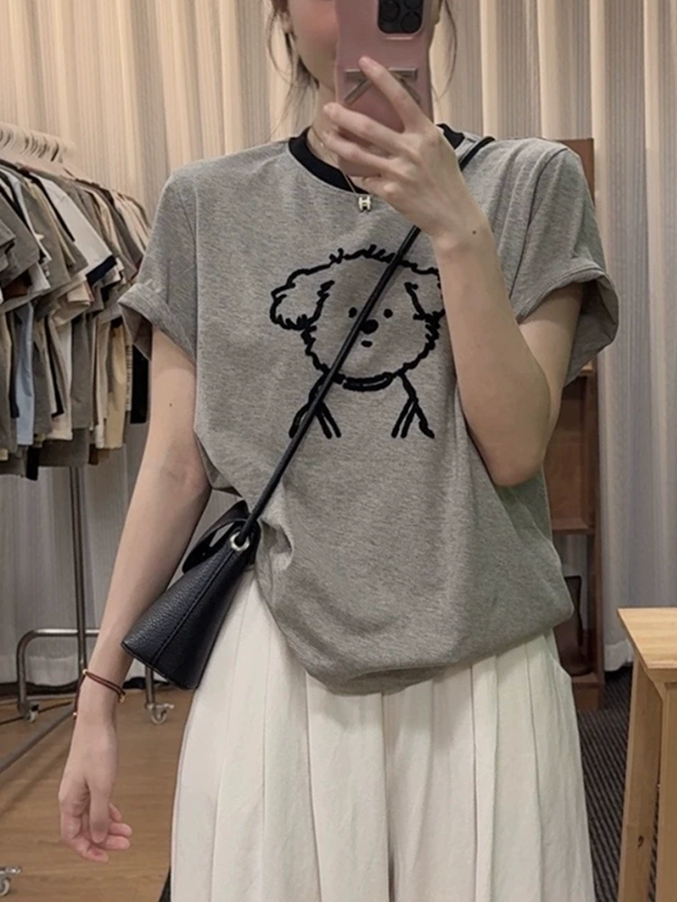 | nameOriginal | Contrast color summer embroidered casual short-sleeved round neck T-shirt |