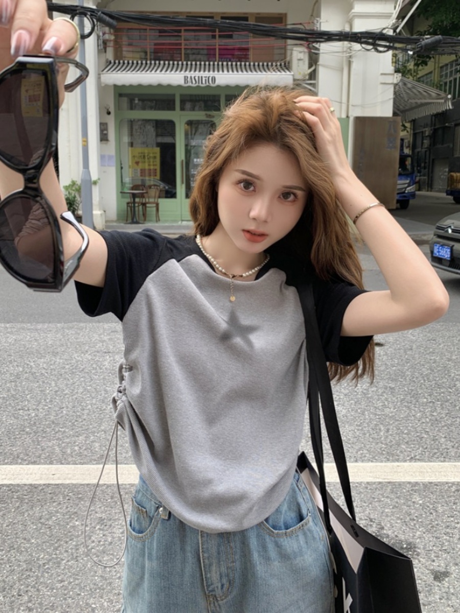 | nameOriginal | Contrast color summer retro fat girl top short-sleeved T-shirt |