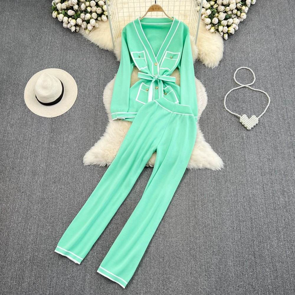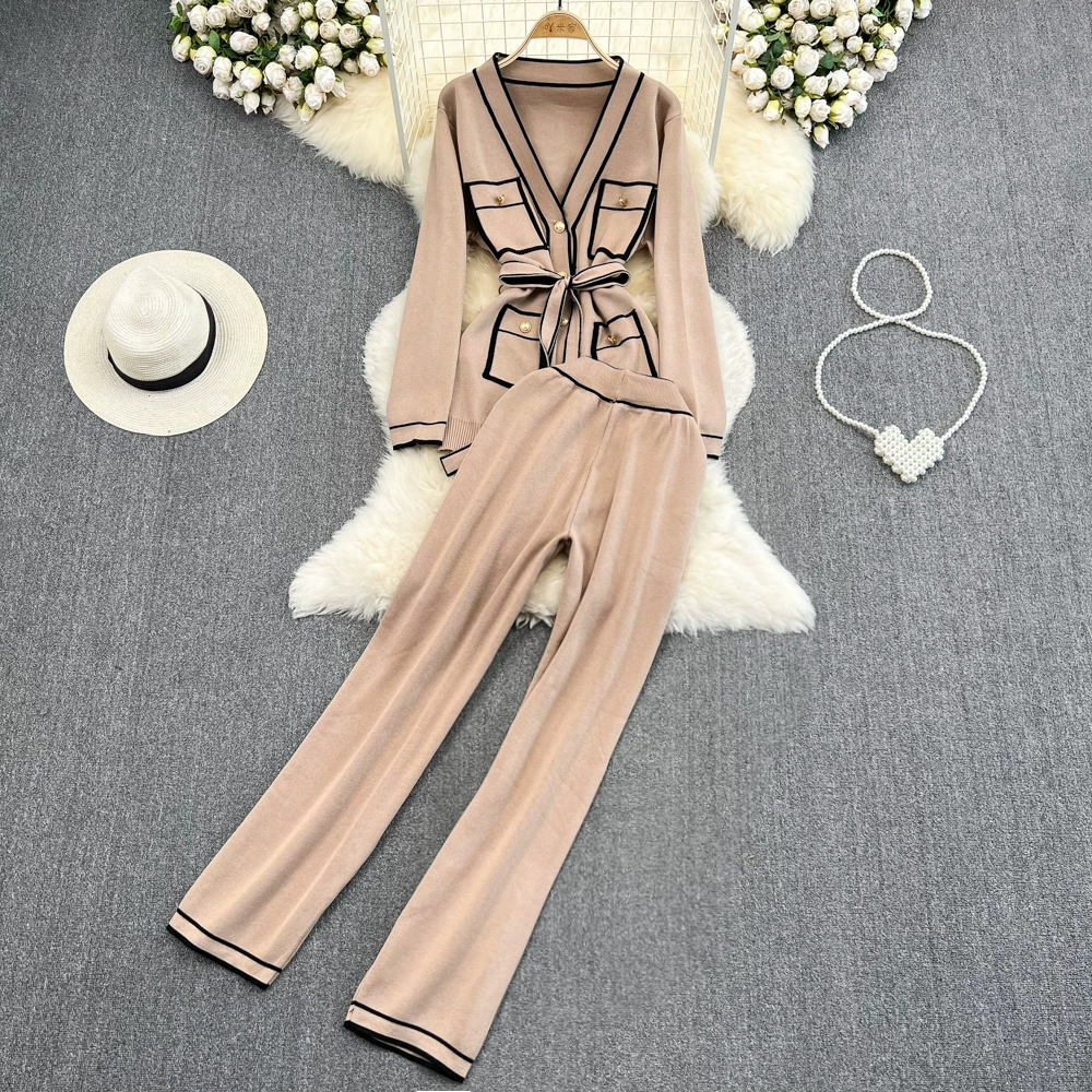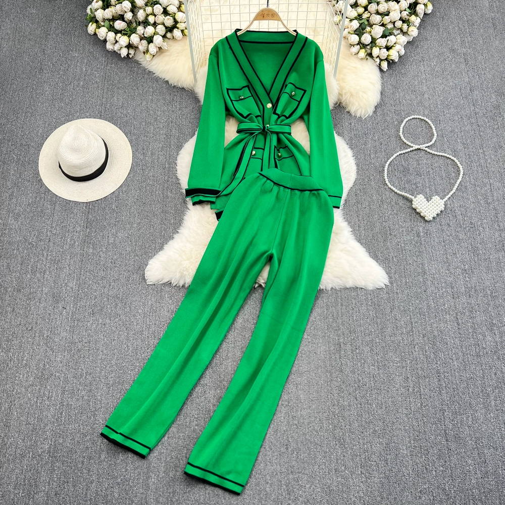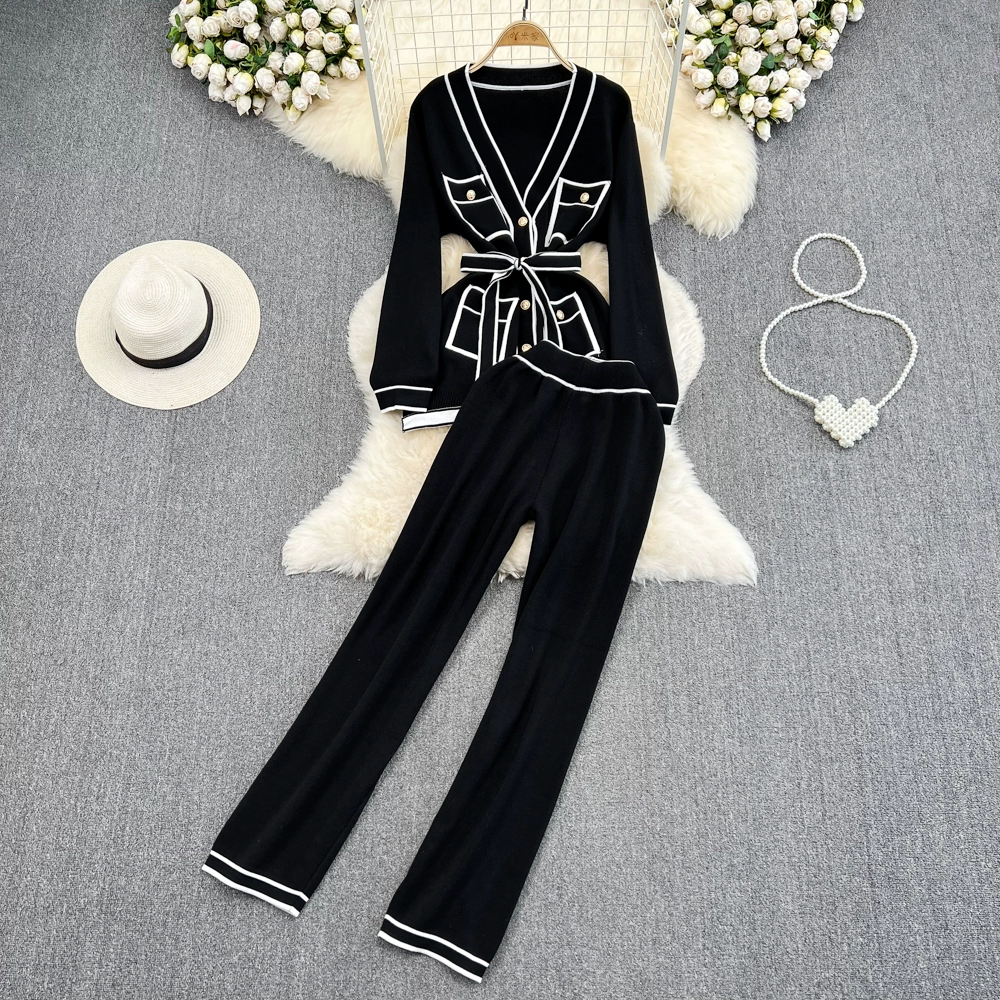 | nameOriginal | Contrast color V-neck single-breasted high-waisted straight fashion suit |