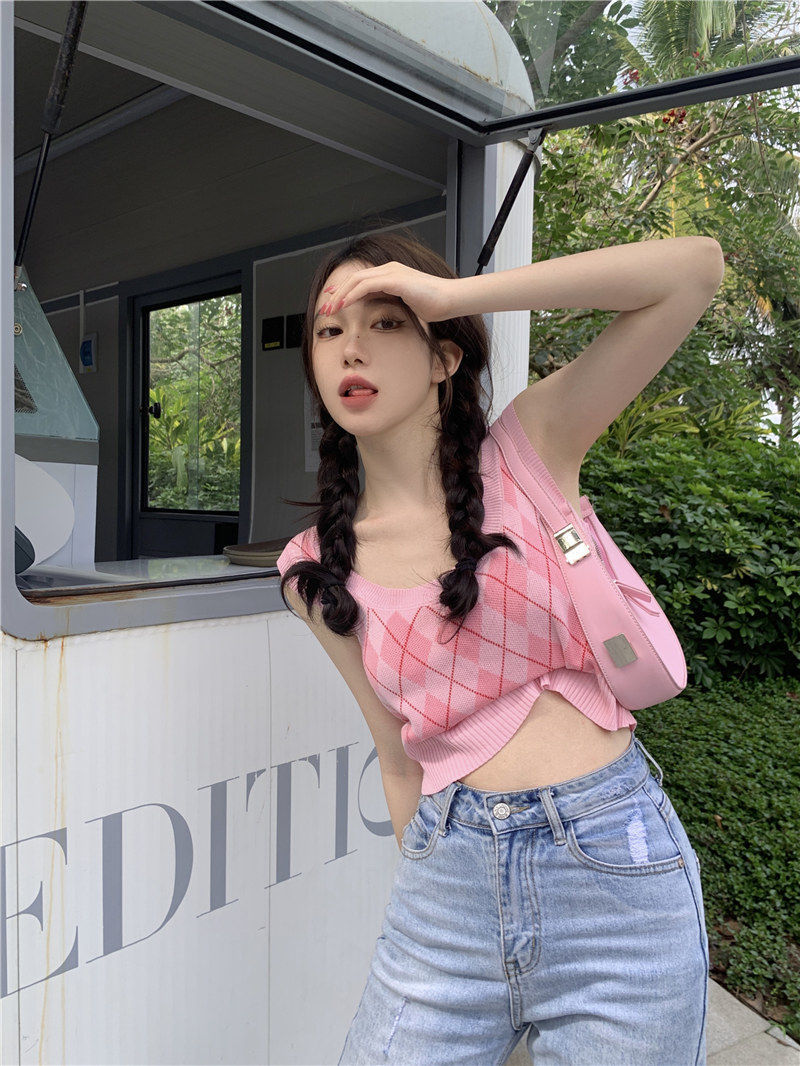 | nameOriginal | Contrast Color Vest Women's Summer Small Inner Rhomboid Camisole Slim-fit Short Outer-wear Knitted Ice Silk 2023 |