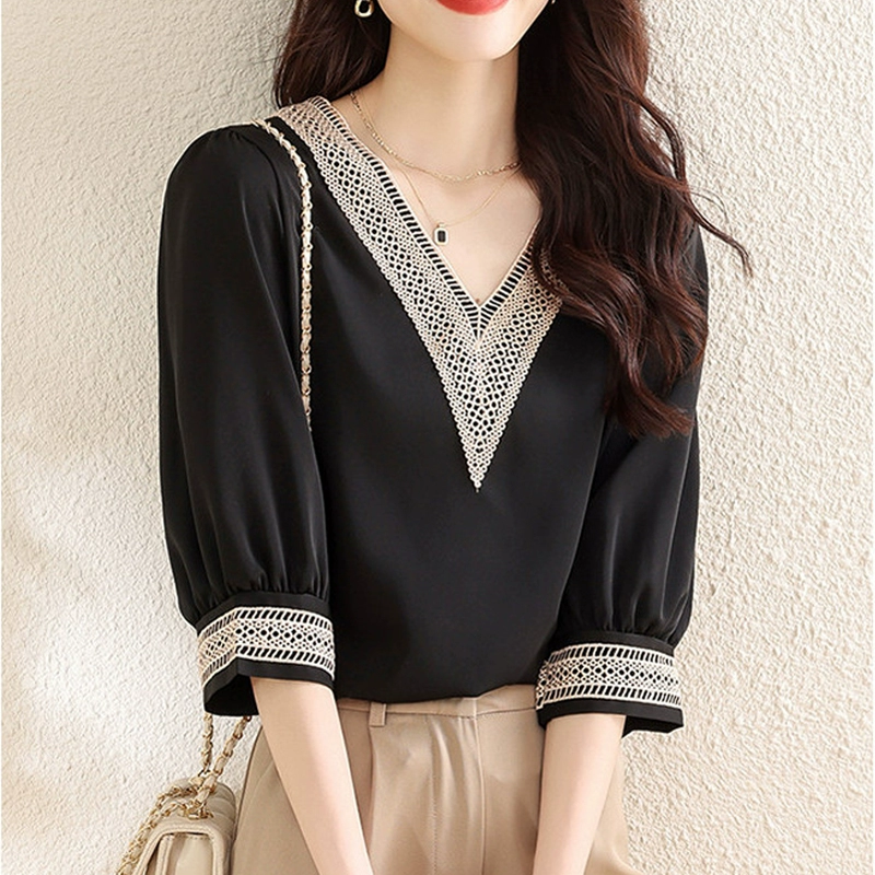 | nameOriginal | Contrast embroidered V-neck mid-sleeve loose chiffon lace |