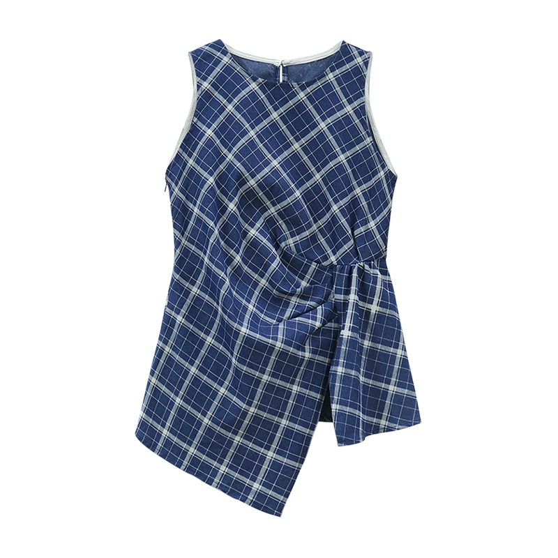 | nameOriginal | Contrast plaid slit slim fit pinch waist sleeveless shirt |