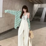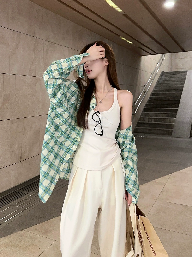 | nameOriginal | Contrast plaid sun protection shirt and casual pants with suspenders |