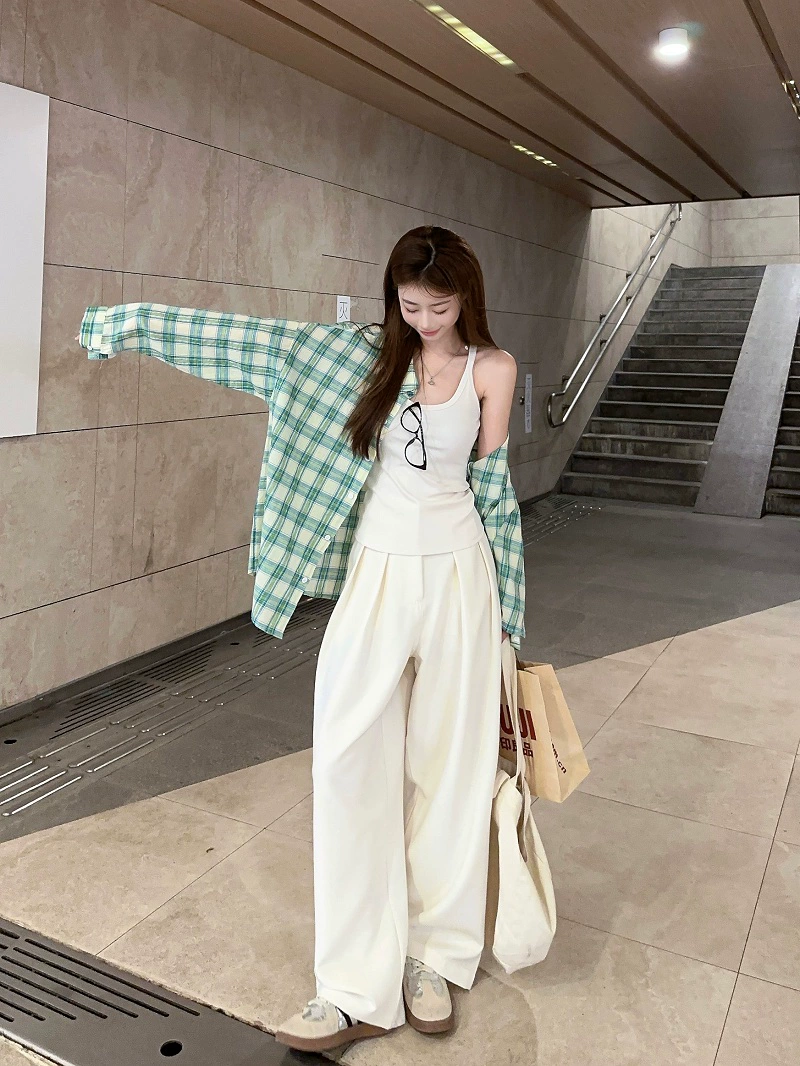 | nameOriginal | Contrast plaid sun protection shirt and casual pants with suspenders |