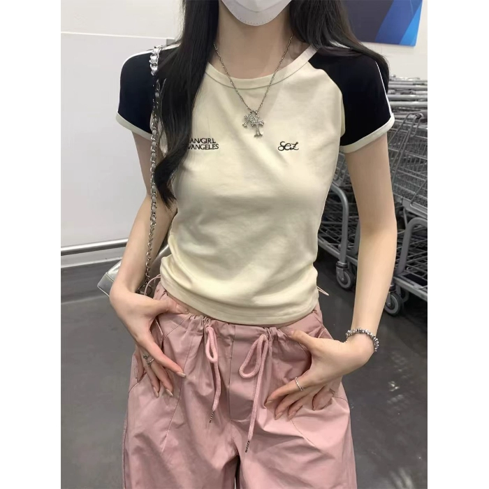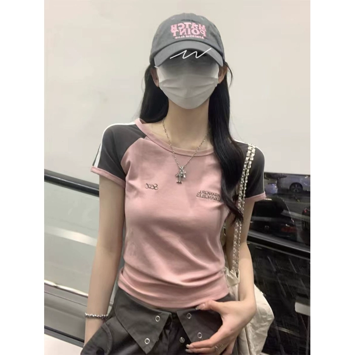 Contrasting color striped ragtops small cotton short-sleeved T-shirt
