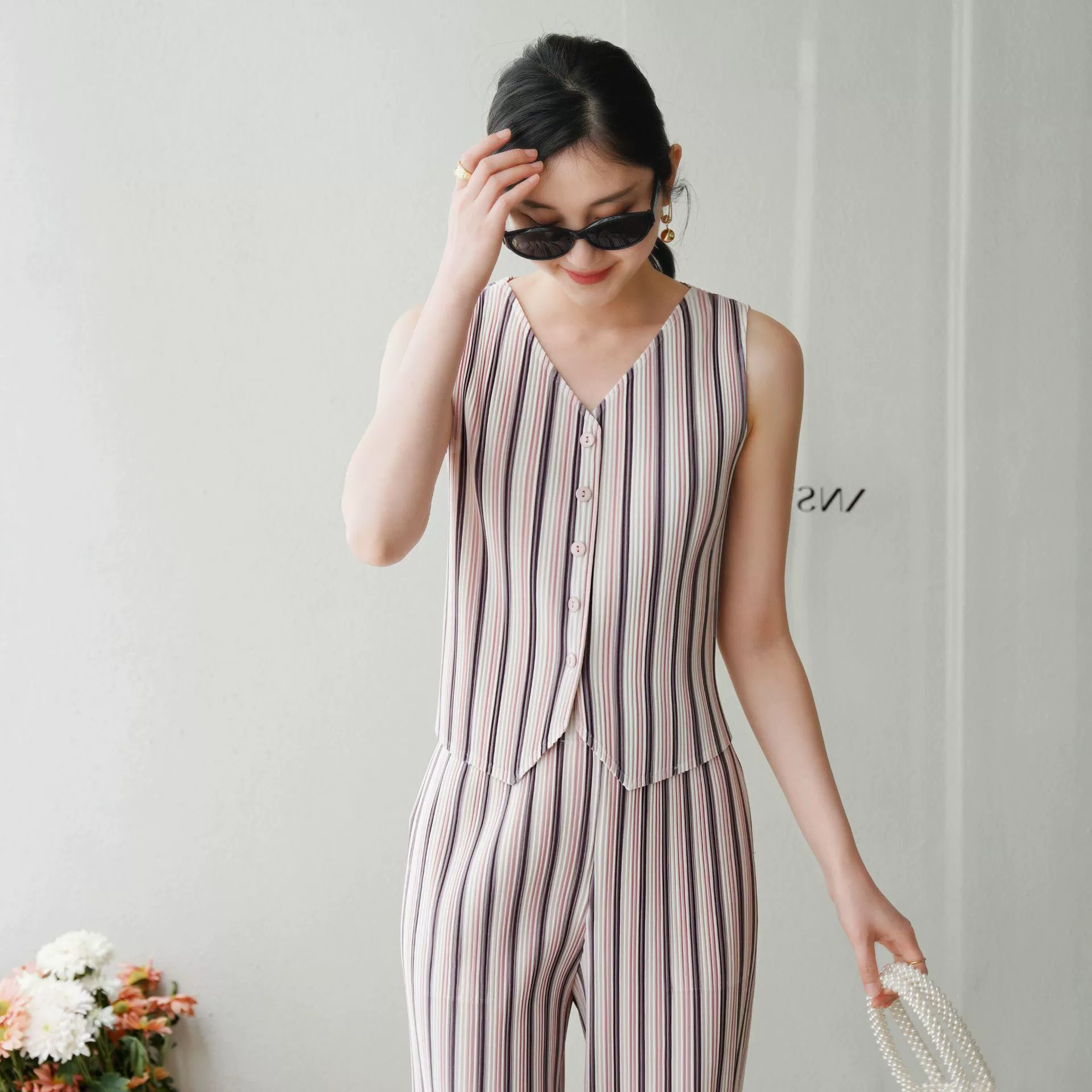 | nameOriginal | Contrast striped sleeveless casual two-piece vest |