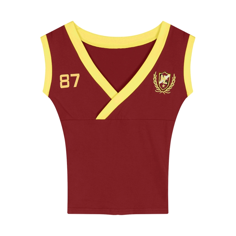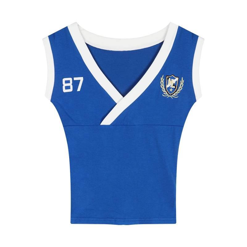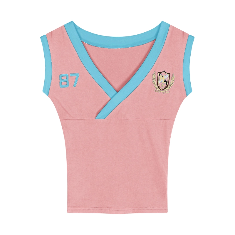 | nameOriginal | Contrasting color V -neck sleeveless T -shirt in summer slimming embroidery |