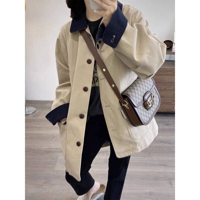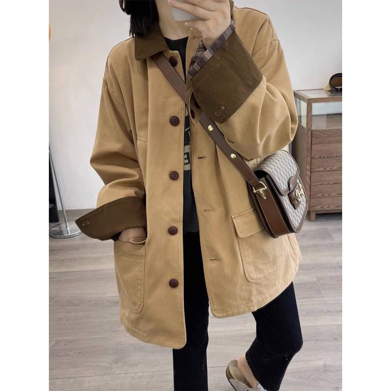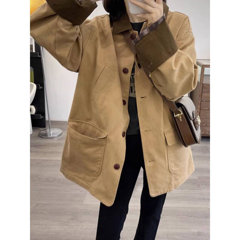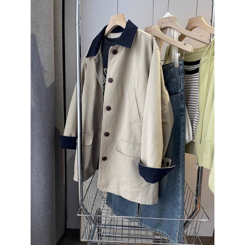 | nameOriginal | Contrasting Lapel Single-breasted Small Mid-length Coat Coat Women's Autumn New Casual Overcoat Trendy |