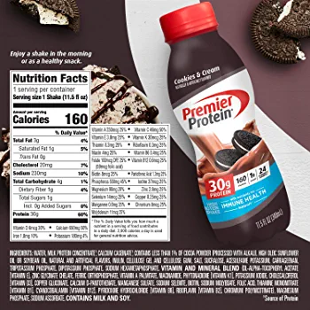 | nameOriginal | Premier Protein Shake, Cookies & Cream, 30g Protein, 1g Sugar, 24 Vitamins & Minerals, Nutrients to Support Immune Health 11.5 fl oz (12 Pack) |