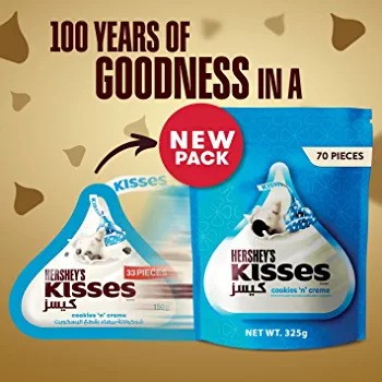 | nameOriginal | Hershey’s Kisses, Cookies ‘n’ Crème, 100 g |