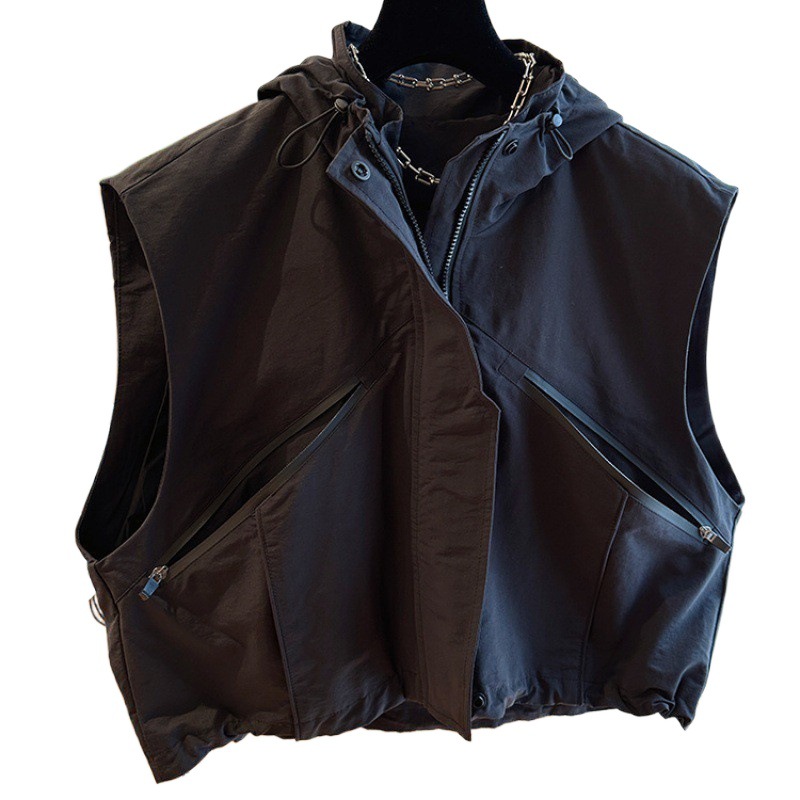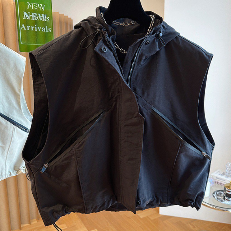 Cool and Handsome Design Sense Niche Workwear Vest Women's Spring and Summer Fashion Loose Casual Sleeveless Hat Waistband Vest Jacket