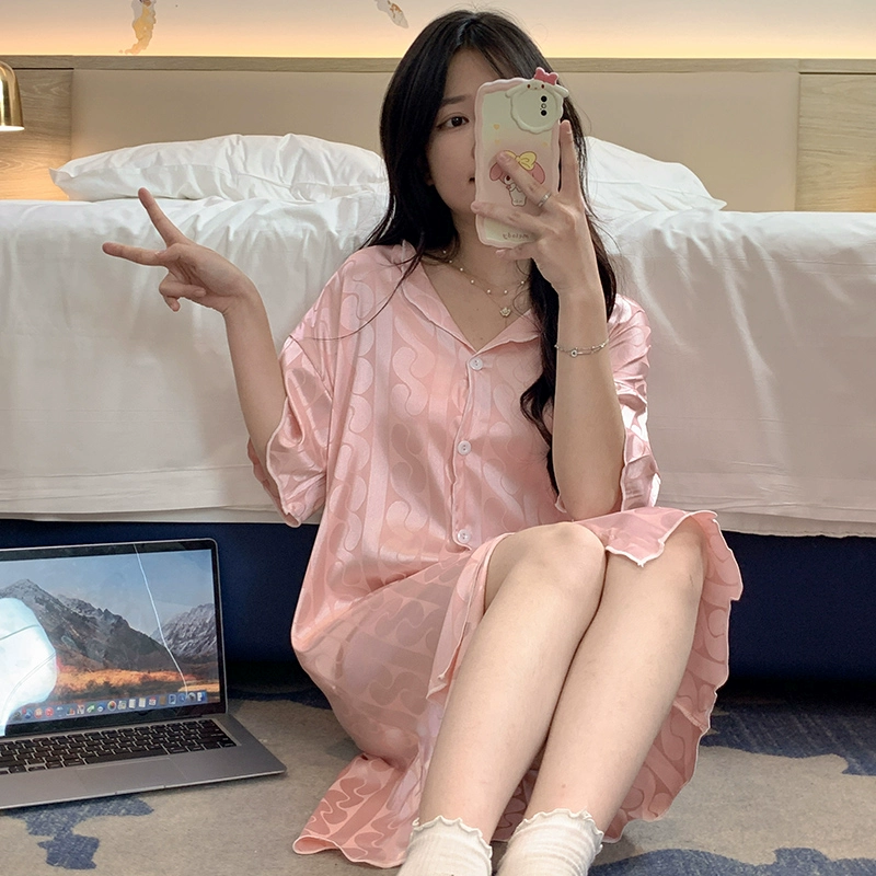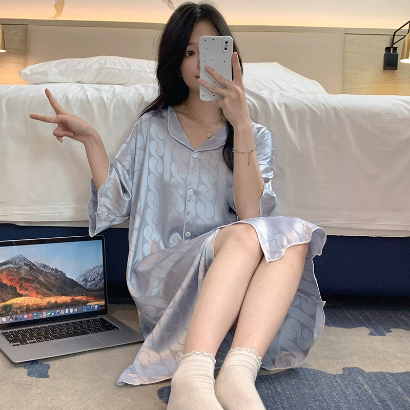 | nameOriginal | Cool ice silk female Internet celebrity style home wear nightgown |