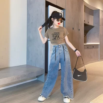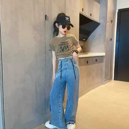 | nameOriginal | Cool straight-leg jeans and short sleeves for girls in summer |