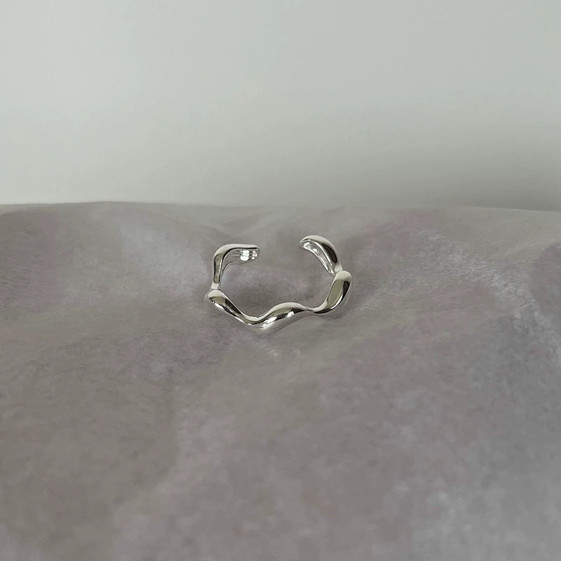 Cool style niche designer minimalist all-over 925 sterling silver ring fashion high-end twisted wave open ring