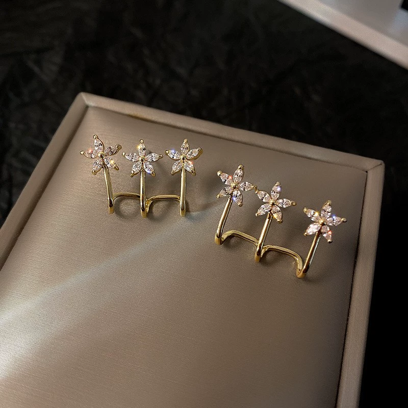| nameOriginal | Cool style three stud earrings exquisite zircon gold flower |