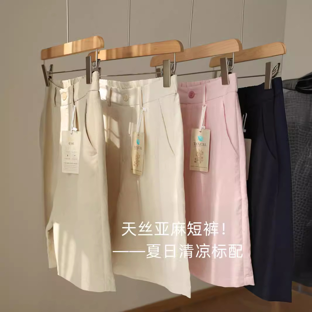 | nameOriginal | Cool summer commute! Tencel linen shorts! High Waist Loose Slimming Straight Wide Leg Five-point Pants Women's Mid-length Pants |
