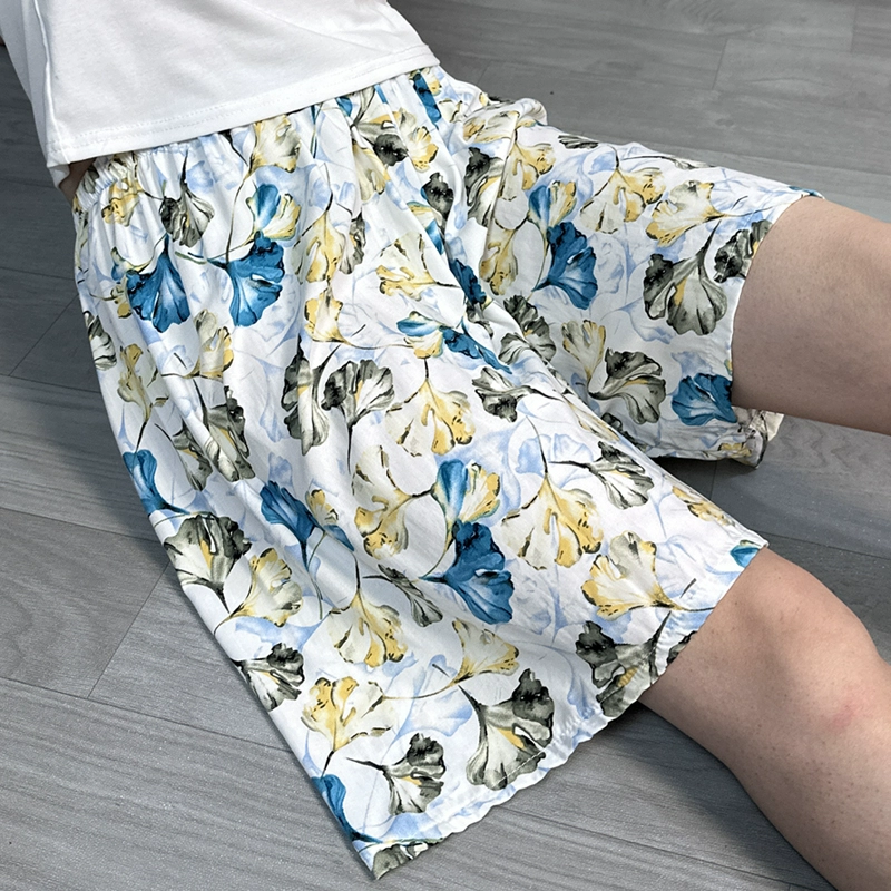 Cool women’s five-point pants thin breathable printed cotton silk