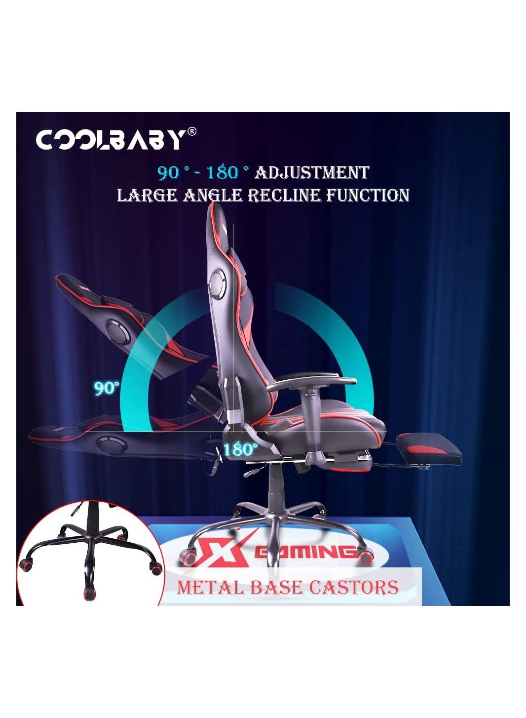 | nameOriginal | COOLBABY Gaming Chair Ergonomic Office Massage Chair,180° Recliner System,2D Adjustable Arm-Rest With Massage and Bluetooth Speaker and Footrest |