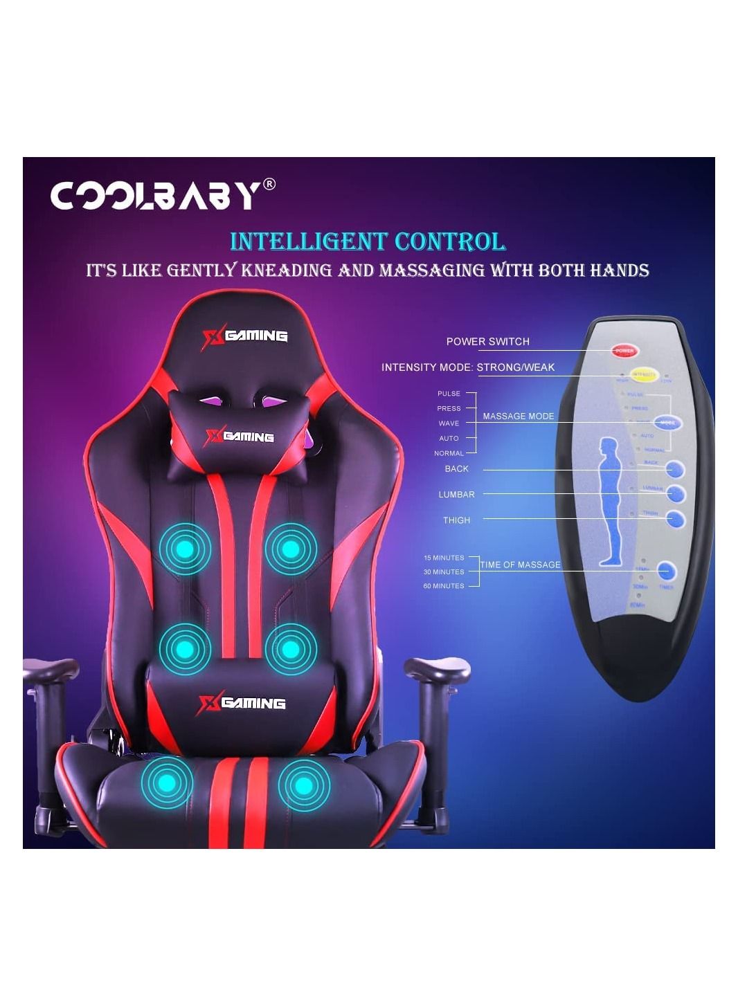 | descriptionOriginal | 【Innovative technology】: the perfect fusion of gaming chair and massage chair. Handle control, seven intelligent massage elements, five massage modes, four changing massage parts, three time controls and two intensity controls. Comparable to professi |