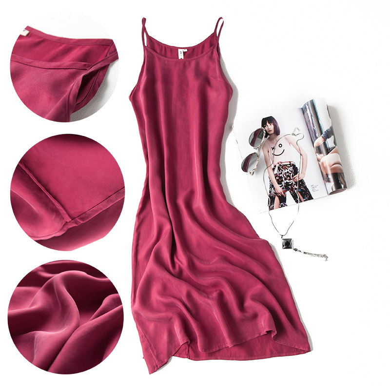 Copper Ammonia Silk Dress Summer New Inner Strap Dress Mid-length