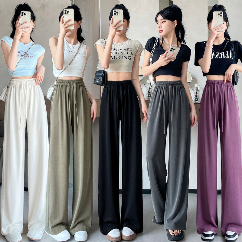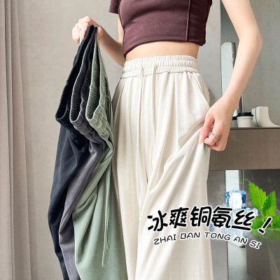 | nameOriginal | Copper Ammonia Silk Narrow Wide-leg Pants Women's Soft Waxy Casual Pants Small Straight Knit Pants for 2024 Summer |