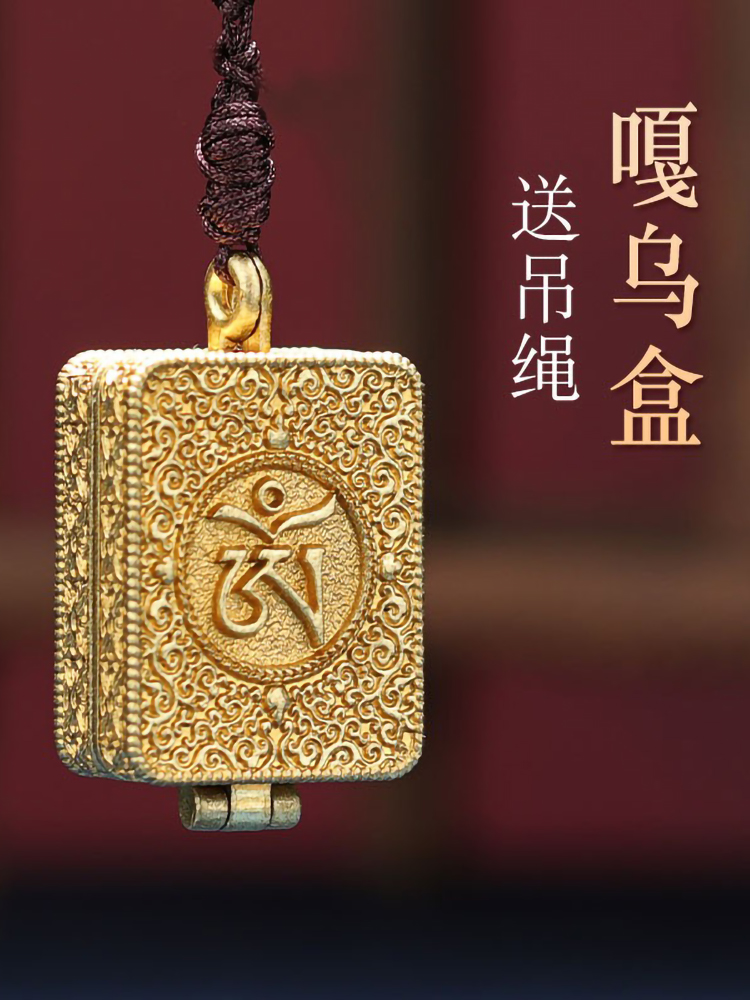 Copper Gawu box with Om pendant for men, cross Vajra pestle square necklace for women, portable ethnic style blessing brand pendant