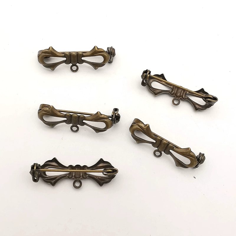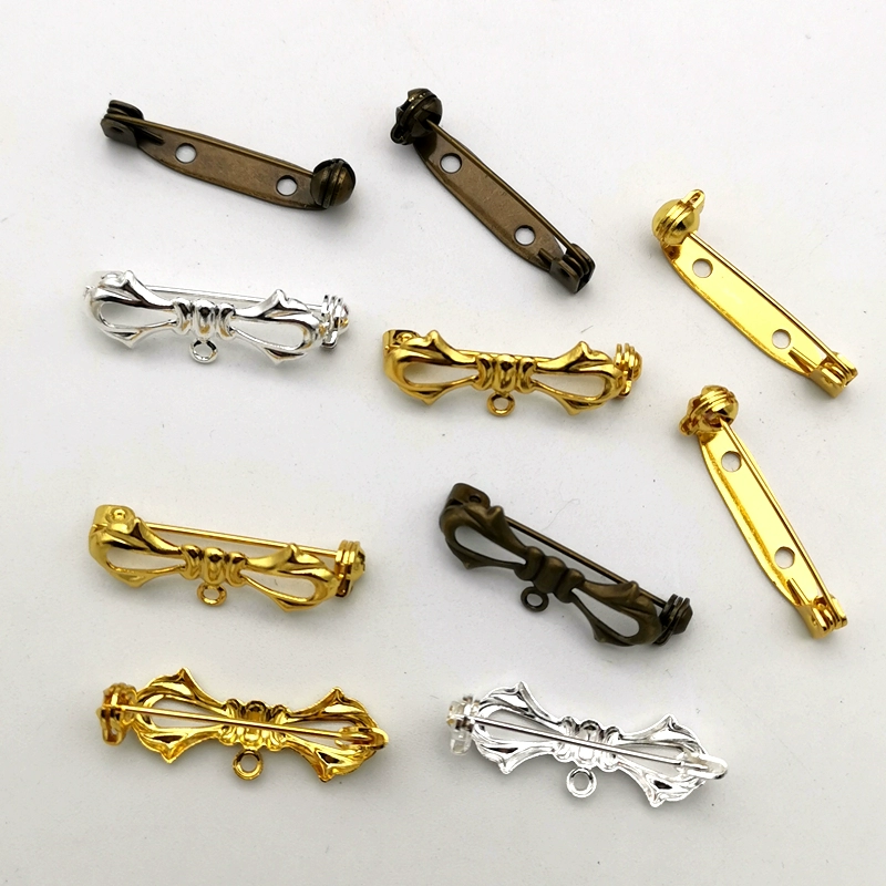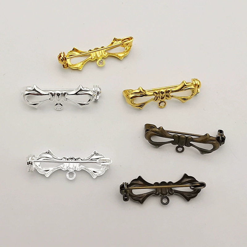 | nameOriginal | Copper gold-plated silver 2.8cm safety pin bow with loop brooch accessories handmade corsage badge DIY material |