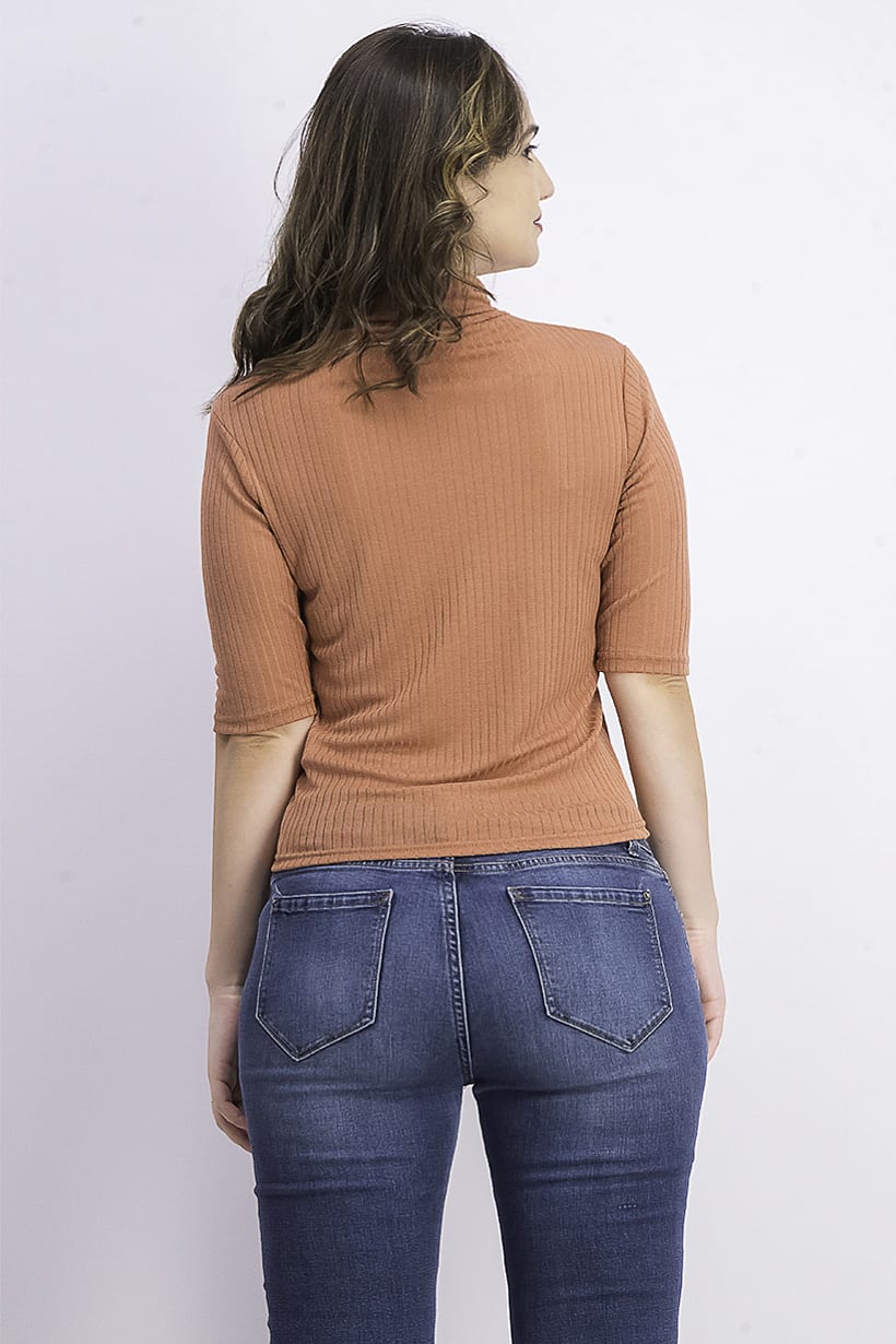 Top Style : Blouse, Ideal For : Women, Occasion : Casual, Fabrics : 35% Polyester, 65% Viscose, Care : Machine washable, Pattern & Print : Textured pattern, Types of Hem : Straight hem, Types of Closures : Pullover, Color Family : Brown, Types of Sleeve : Elbow sleeve, Fit : Regular fit, Size shown : International, Types of Neckline & Collar : Mock neckline, Disclaimer : Product color may slightly vary due to photographic lighting sources or your monitor settings.,