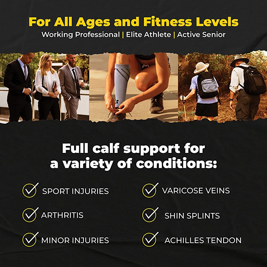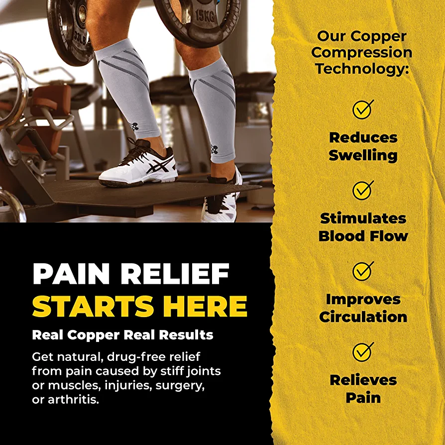 Introducing CopperJoint’s Compression Calf Sleeves for Men and Women – the solution to your leg pain problems. Don’t let leg pain hinder your daily activities. Our compression sleeves provide instant pain relief and feature a 3D ergonomic design that ensures comfort and compression throughout the day. With 4-way compression, our sleeves offer the right amount of support for your legs, providing 20-30mmHg of compression. Whether you’re a nurse, runner, working professional, or active senior, our calf compression sleeve is suitable for any lifestyle and activity. It’s perfect for those suffering from shin splints, varicose veins, calf soreness, or any other type of leg pain. Say goodbye to leg pain and hello to CopperJoint’s Compression Calf Sleeves.