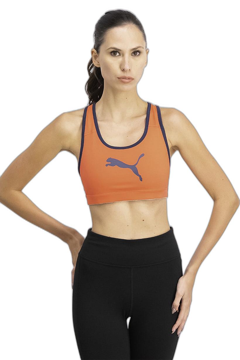 Women Brand Logo Non Padded Sports Bra, Coral and Navy
