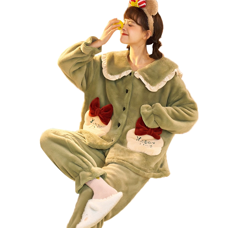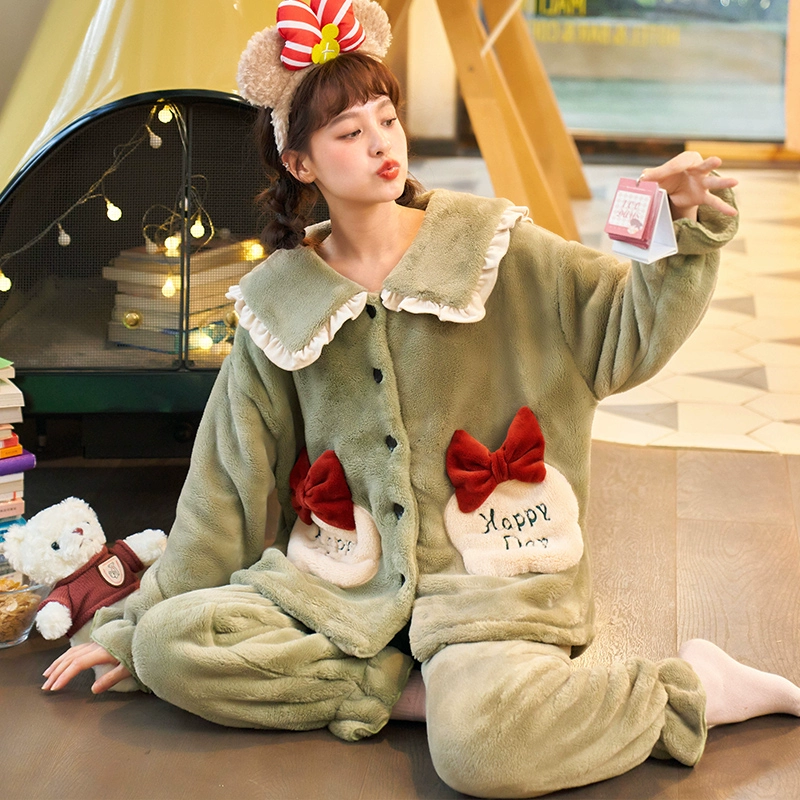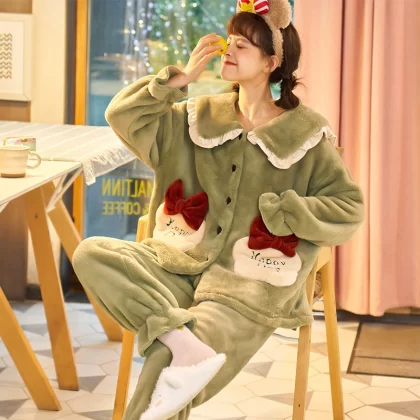 | nameOriginal | Coral Fleece Pajamas for Women Autumn and Winter Thickened and Velvet 2024 New Cute Warm Flannel Home Clothes Set |