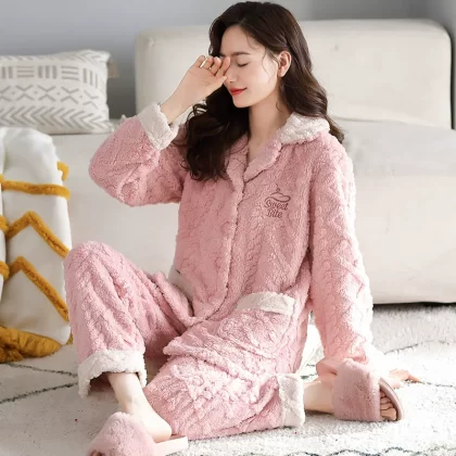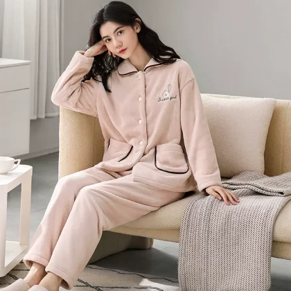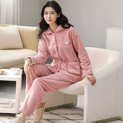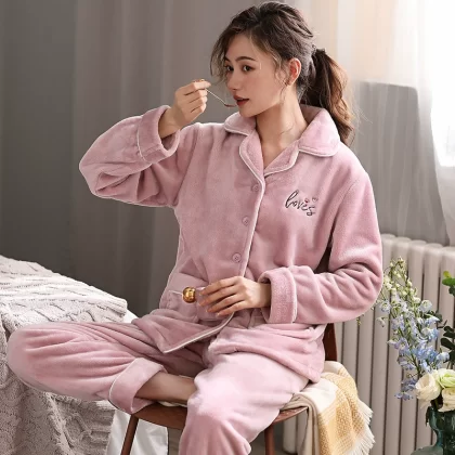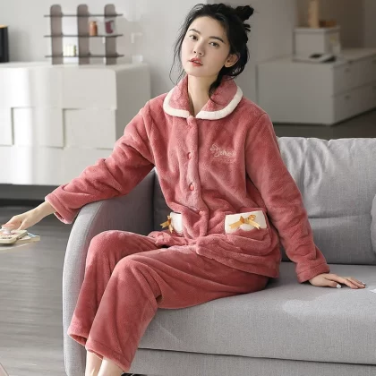 | nameOriginal | Coral Fleece Pajamas Women's Autumn and Winter 2024 New Flannel Spring and Autumn Style Thickened and Velvet Winter Home Clothing Set |