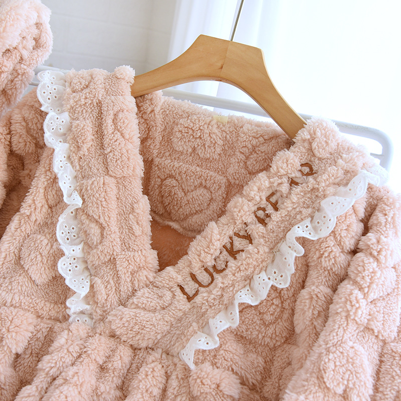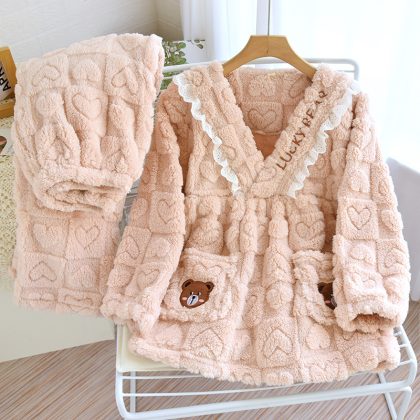 Coral fleece pajamas women’s winter long sleeve 2023 New flannel thickened warm spring and autumn day home wear suit