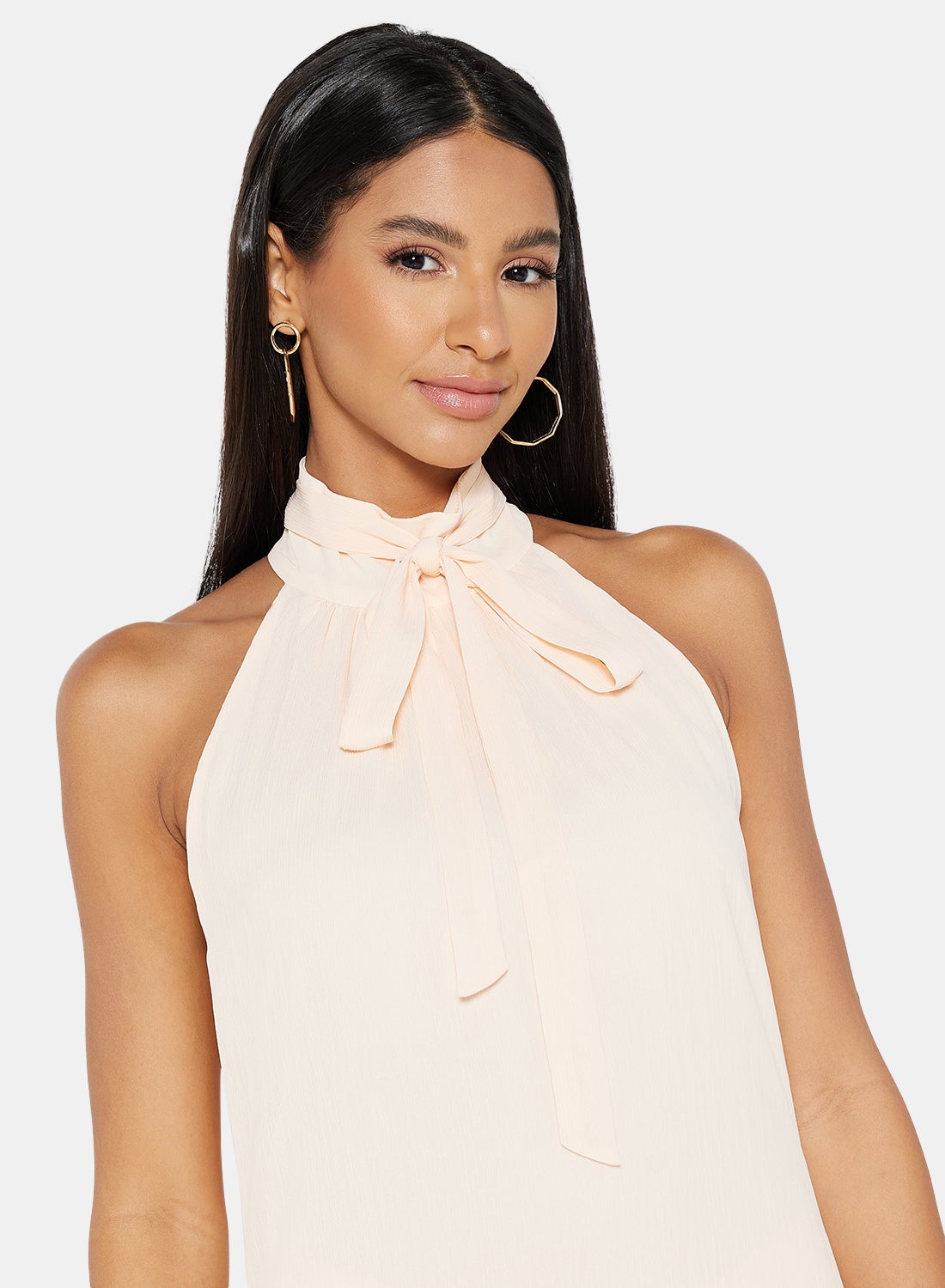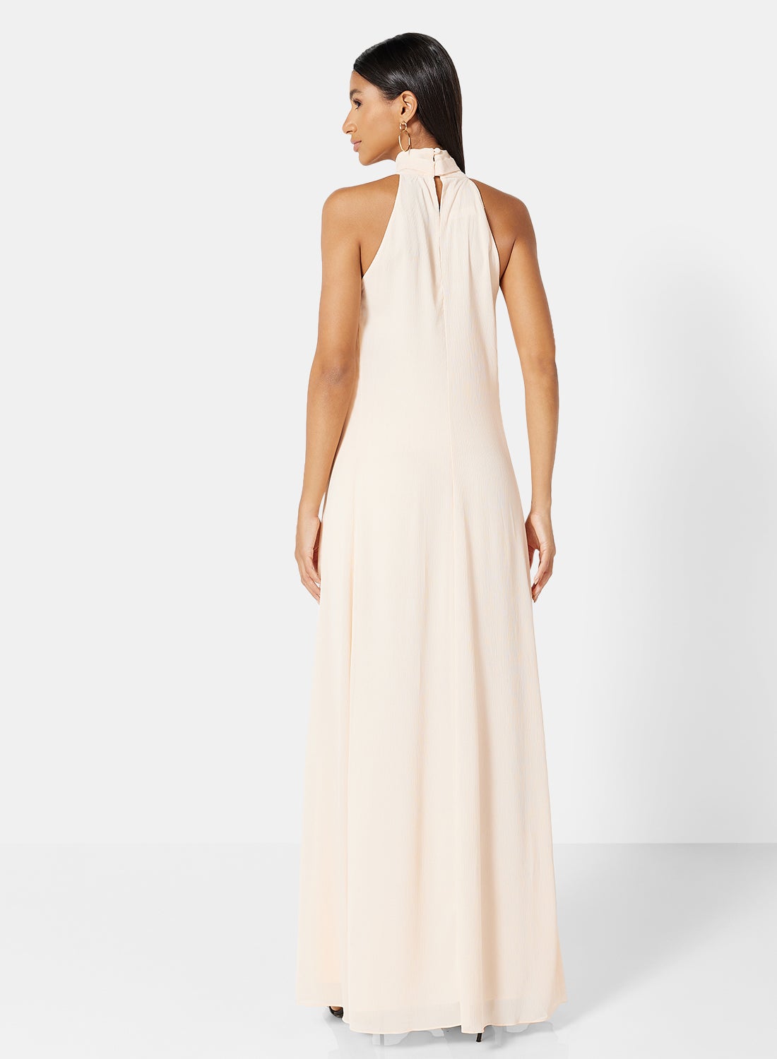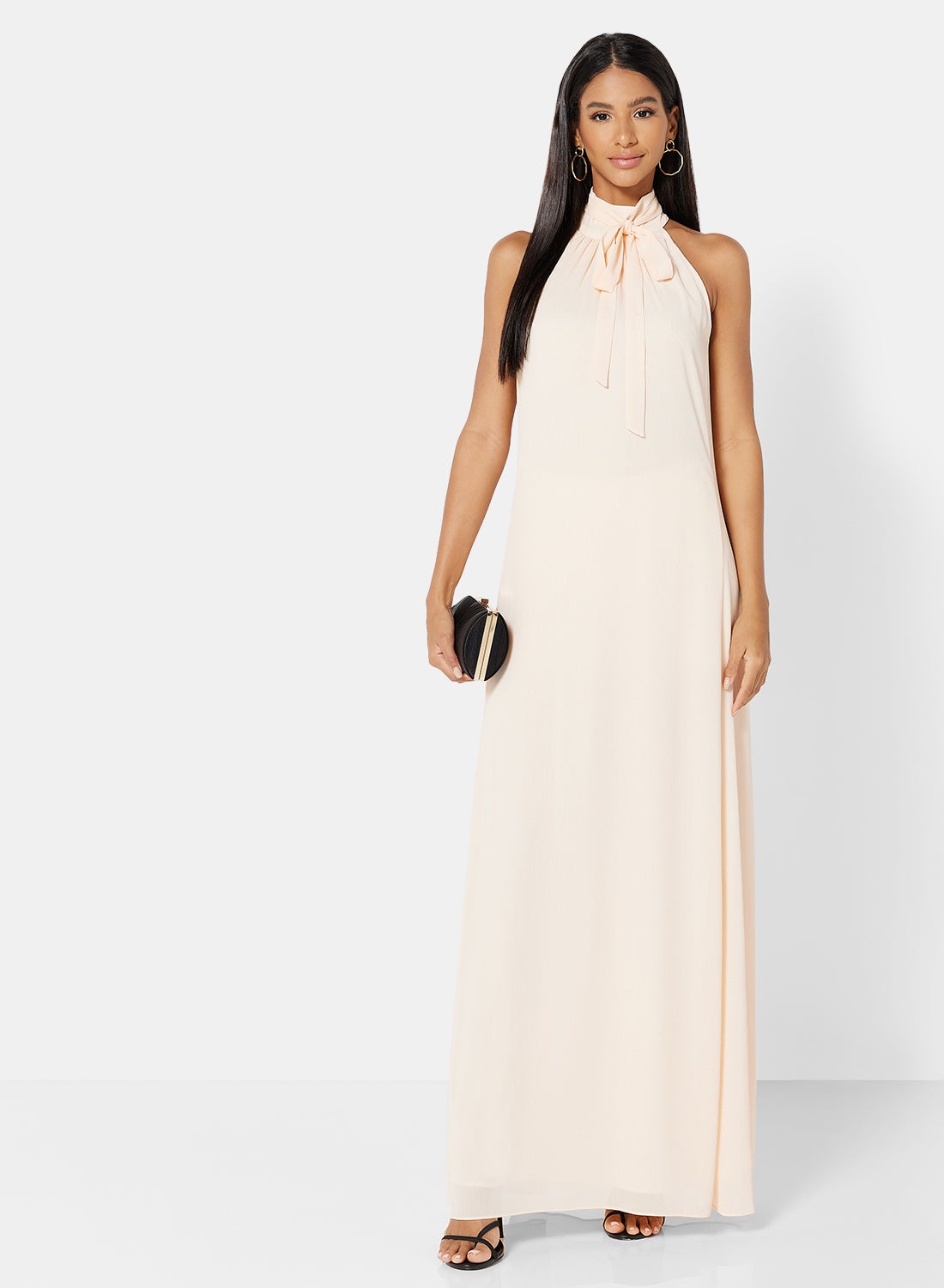 To complete your party ensemble, consider including a clutch with this outfit. The dress features a high neckline, as well as gathered neckline detail and a tie-up back detail. It is a maxi length dress made of 100% polyester. Please follow the care label instructions when washing. The model in the picture is 173cm tall and is wearing a size S.