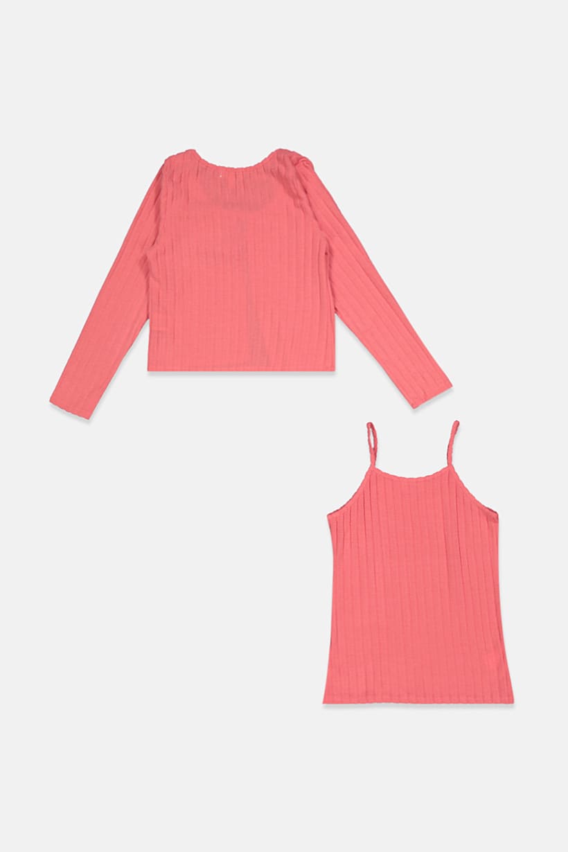 | nameOriginal | Kids Girl 2 Piece Rib Top With Tie Front Cardigan Set, Coral |