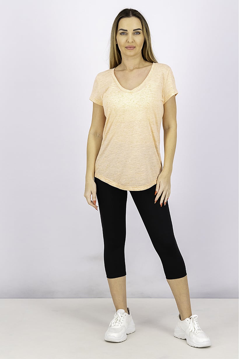 | descriptionOriginal | Care : Machine washable, Fit : Sportswear Fit, Size shown : US, Thickness : Light, Type of Sport : Training, Types of Hem : Straight hem, Types of Neckline & Collar : V-neckline, Types of Sleeve : Short sleeve, Disclaimer : Product color may slightly vary due to photographic lighting sources or your monitor settings., Fabrics : 63% Viscose, 35% Polyester, 2% Elastane, Pattern & Print : Textured pattern, Sportswear Type : T-Shirt, Types of Closures : Pullover, Color Family : Orange, |