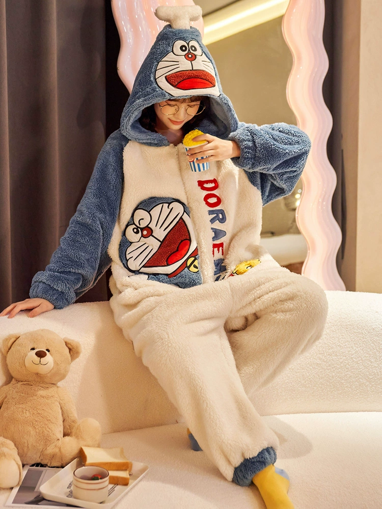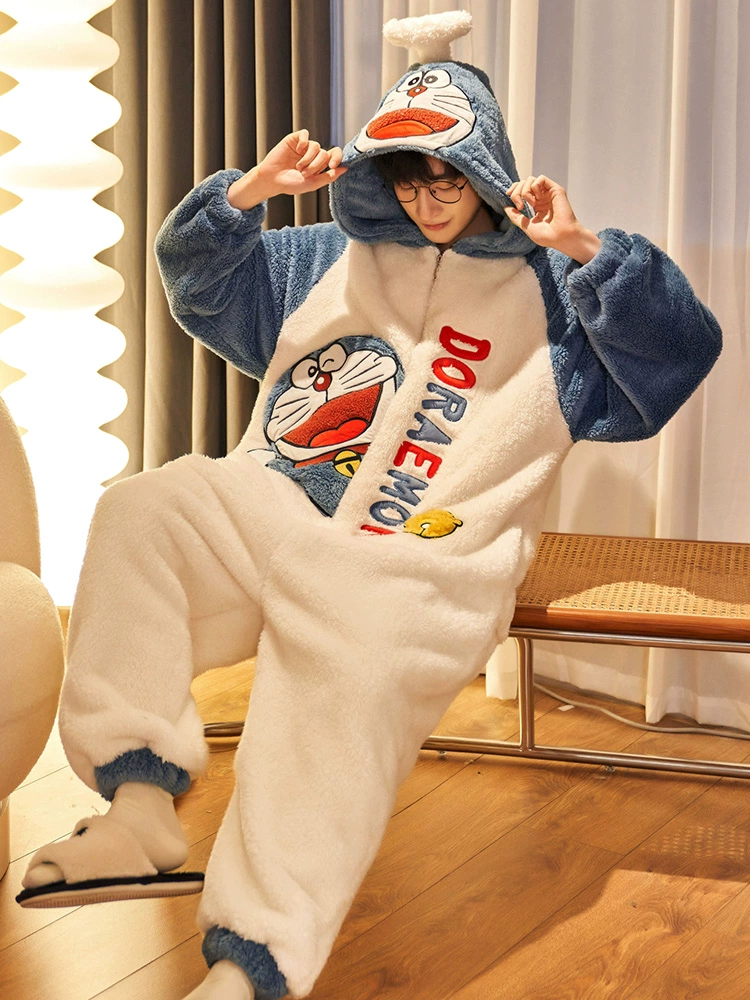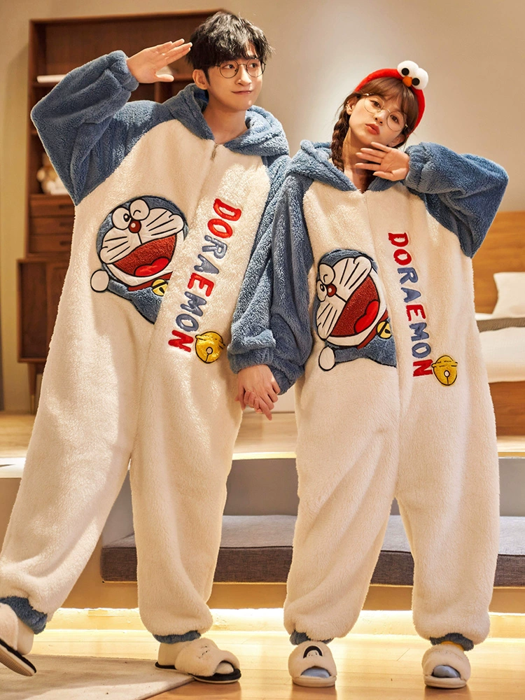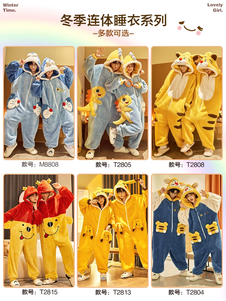 | nameOriginal | Coral velvet couple jumpsuit pajamas for women autumn and winter cute plus velvet thickened flannel men's home wear set |