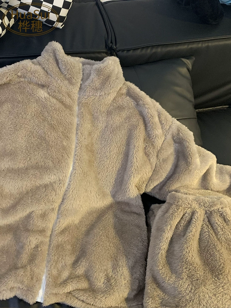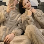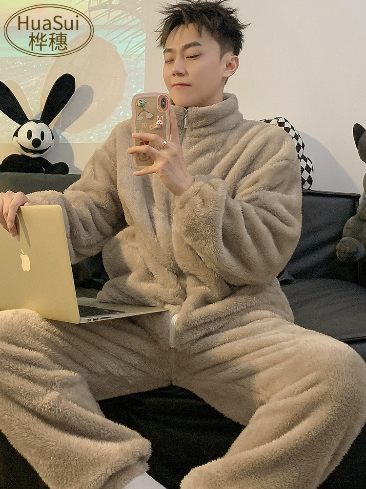 | nameOriginal | Coral velvet couple pajamas for women in autumn and winter thickened and velvet solid color simple men's flannel home wear set |