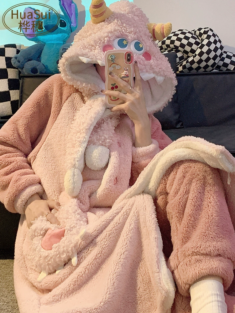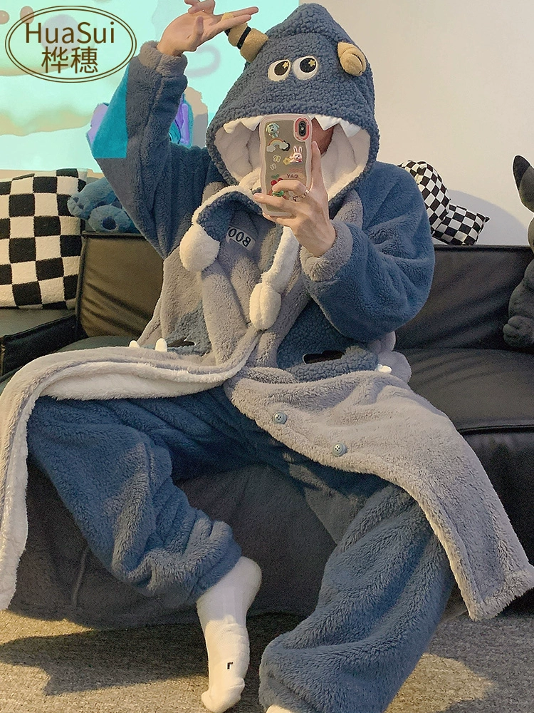 | nameOriginal | Coral velvet couple pajamas winter cute flannel autumn and winter thickened velvet men's and women's nightgown home wear set |