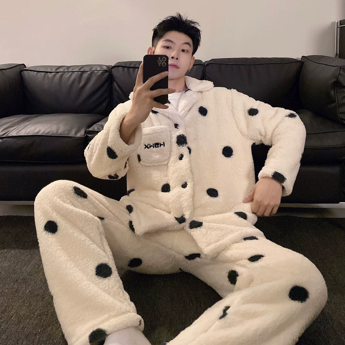 | nameOriginal | Coral velvet men's Japanese ins striped winter pajamas |
