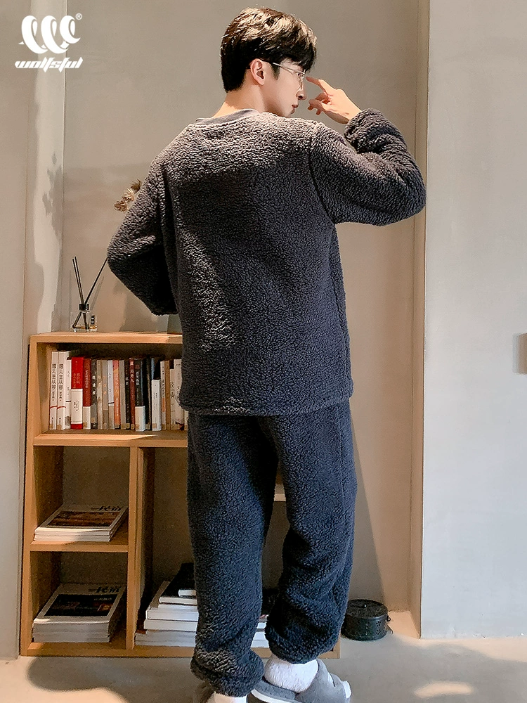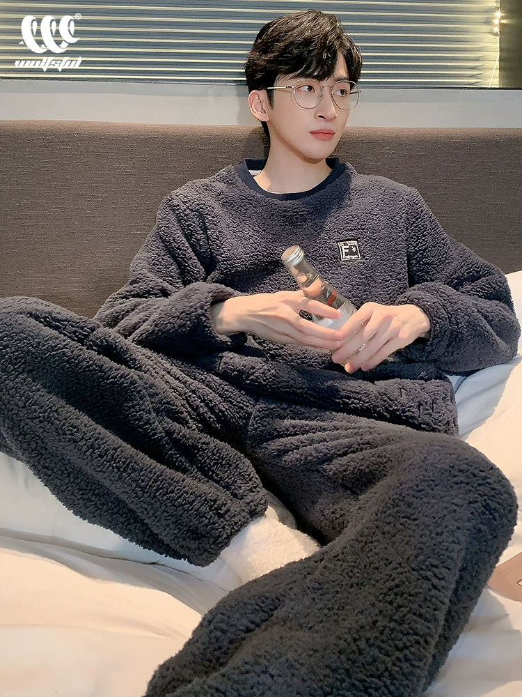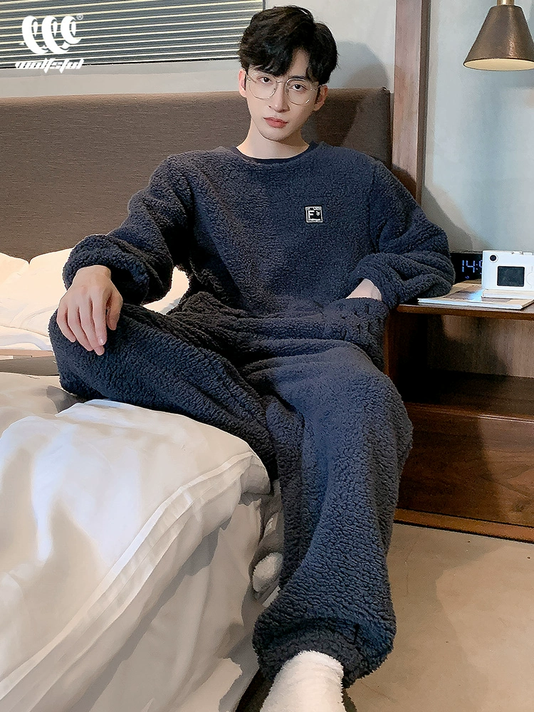 | nameOriginal | Coral velvet men's pajamas autumn and winter style plus velvet thickened youth warm casual college student home wear set |